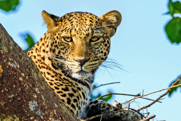 The leopard (Panthera pardus) is the shiniest, smallest and the strongest climber of the four "big cats" in the genus Panthera, the other three being the tiger, lion, and jaguar. Their shoulder blades even have special attachment sites for stronger climbing muscles. They spend much of their time in trees even when stalking prey and for eating. In Kenya, you can spot these sublime creatures while on a wildlife safari in most of Kenya's National Parks and Reserves.