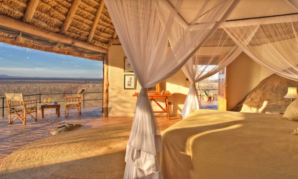 Family cottage interior at Luxurious Elewana Elsa's Kopje, Meru.