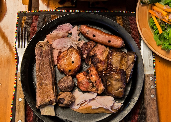 The experience works on a simple all-you-can-eat basis: as long as the paper flag on your table is flying, beautifully attired waiters will keep bringing the meat, which is carved right at the table. This dinning experience is enhanced by the informal, house cocktail the 'dawa' ( magic potion in swahili), which serves to hydrate, refresh and sharpen your palate for every delicious bite. Since 1980, when the restaurant opened its doors over two million international guests have shared in what is known as "the ultimate Beast of a Feast".